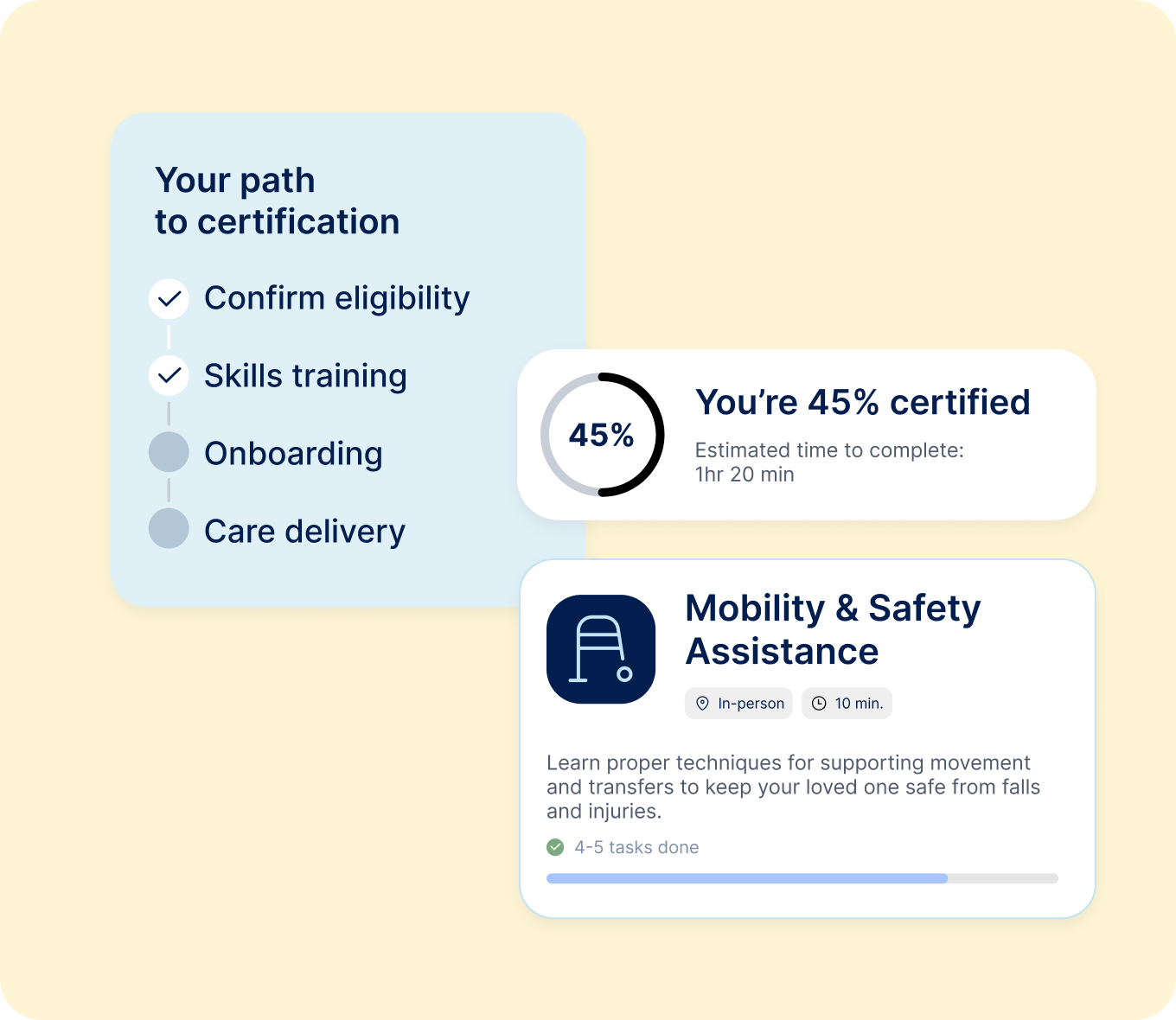 Upon qualification, our team will train the caregiver to become certified at no cost to you. The training program is a virtual hybrid program tailored to your own schedule.