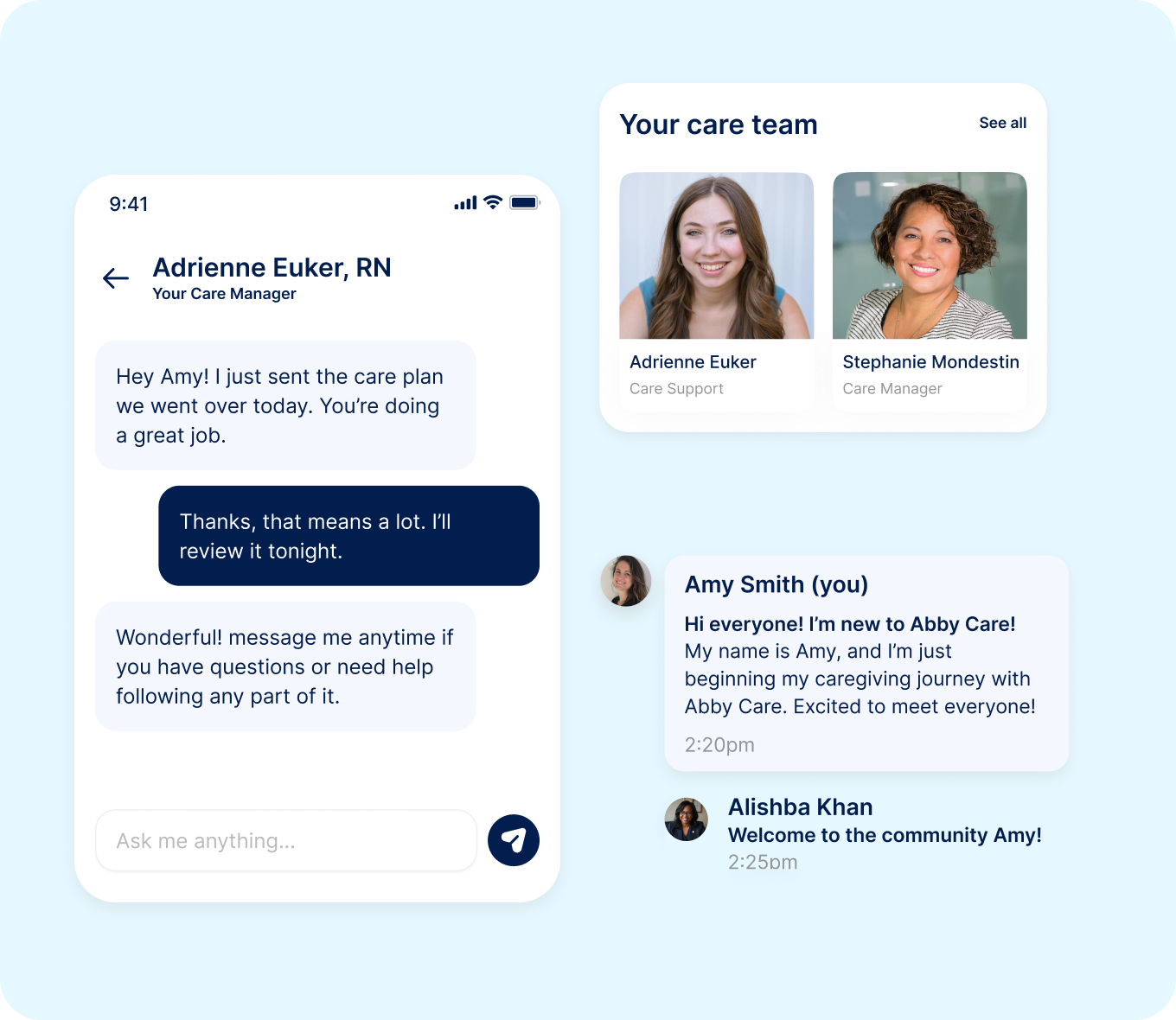Our team will build a care plan personalized to your loved one. Abby Care is a community made up by families like yours where you can all support one another.